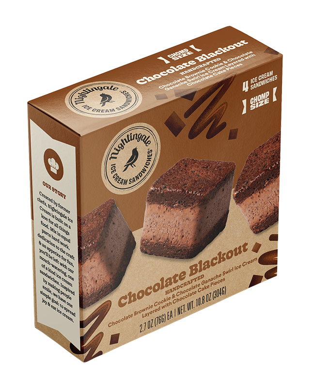 CHOCOLATE BLACKOUT ICE CREAM: [Milk, Cream, Liquid Sugar (sugar, water), Nonfat Milk, Locust BeanGum, Guar Gum, Carrageenan, CHOCOLATE CAKE{sugar, wheat flour enriched {(wheat flour, niacin,reduced iron, thiamine mononitrate, riboflavin, folic acid), malted barley flour}, soybean oil, water, eggs,cocoa powder (high fat cocoa powder processed with alkali), sodium bicarbonate (leavening agent),salt},CHOCOLATE GANACHE{semi-sweet chocolate (sugar, unsweetened chocolate, cocoa butter, soy lecithin, natural vanilla extract) ice cream mix (milk, cream, liquid sugar (sugar, water), nonfat milk ,locust bean gum, guar gum, carrageenan.)},COCOA POWDER(high fat cocoa processed with alkali),Glucose Syrup Solids, Sorbitol, Palm Kernel Oil, Xanthan Gum, Milk Protein],BROWNIE[Brown Sugar,Wheat Flour Enriched {(wheat flour, niacin, reduced iron, thiamine mononitrate, riboflavin, folic acid),malted barley flour}, Vegetable Shortening (palm and soybean oil),SEMI-SWEET CHOCOLATE CHIPS(sugar, unsweetened chocolate, cocoa butter, soy lecithin, natural vanilla extract), Eggs, Cocoa Powder(high fat cocoa powder processed with alkali), Salt, Sodium Bicarbonate (leavening agent)].